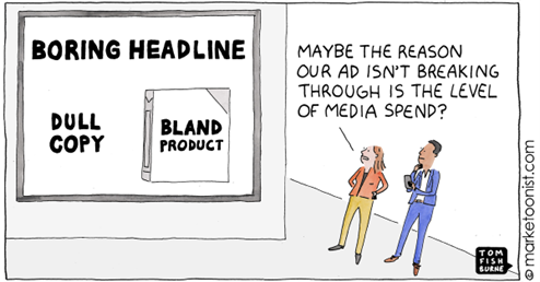 Marketéři mají často tendenci se honit za pozlátkem a nejnovějšími trendy, soustředí se na detaily a zapomínají na širší pohled na věc. Tom Fishburne to označuje jako “marketingovou krátkozrakost”. Často tuto krátkozrakost přehlížíme, protože se bojíme jiné konfrontovat. Fishburne proto zdůrazňuje sílu humoru, který nám pomáhá tyto neduhy odhalit bez toho, aniž bychom se museli cítit špatně. Fishburne hovořil o tom, abychom se nenechali vždy strhnout novými technologiemi a nabádá marketéry, aby se zaměřili na to, co je pro zákazníky důležité: jejich potřeby. Marketup doporučuje: dejte si 5 minut na projití nejlepších prací z Marketoonistu zde